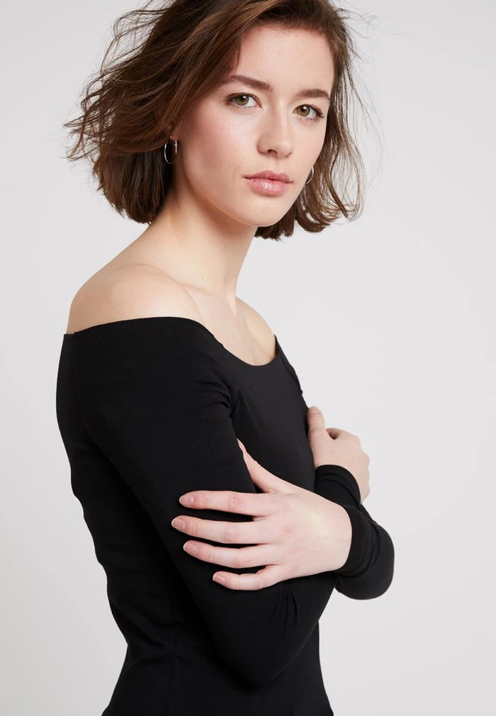 - Neckline: Off-the-shoulder