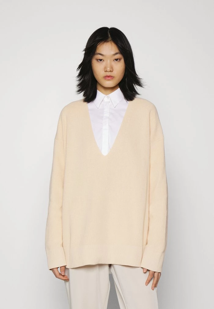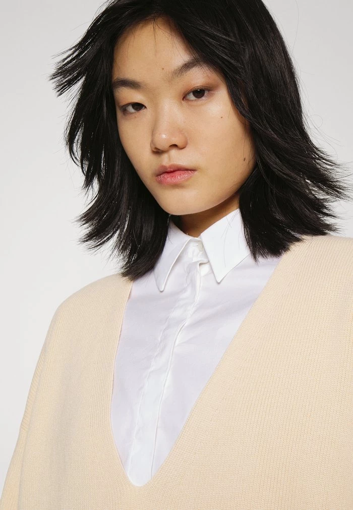 - Neckline: Low-cut v-neck